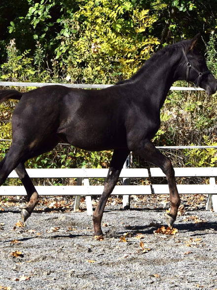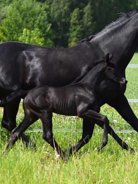 Faith är ett mycket trevligt och kontaktsökande sto med tre fina gångarter. Hon är högbent och elegant och mycket väl ihopkommen. Lägg därtill tre goda gångarter. Hennes helsyster Fame MVG belönades med 49 p och diplom på sitt unghästtest. .