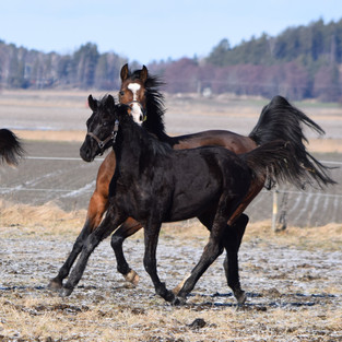 Pagila & Predator och Finesse & Fendt fick flytta från vita lösdriften där det går 1-års ston och även Jawa som inte är dräktig till lösdriften på Viby där det är tänkt att det ska gå några dräktiga ston och hingst-åringar. Och i morgon är tanken att Penelli & Diva ska flytta till vita lösdriften. Penelli flyttar eftersom hon inte är dräktig och just nu går med 1-års hingstar inklusive sin egen. Diva flyttar för att hon är så pass fräsch så hon inte behöver stå på stall längre och det underlättar med en box mindre att mocka.