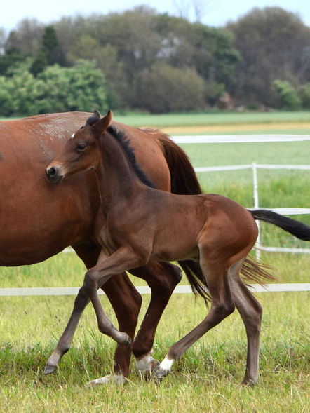 Fadern Hometown e.Apache är en holländsk hingst som sedan några år finns i Sverige. Hans avkommor är ännu väldigt unga i Sverige, men jag har sett en hel del riktigt fina från Holland. Det som utmärker Hometowns avkommor är att dom har riktigt fina bakben.